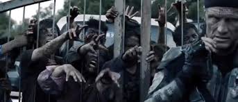 | They're NOT zombies, as the script takes pains to point out. It's just their higher brain functions are - er - gone. |